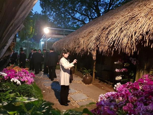 Cuối giờ chiều, Đoàn đến HTX Đan Hoài, nơi nổi tiếng với mô hình trồng lan hồ điệp công nghệ cao. Bà Hyon Song Wol thể hiện sự quan tâm đến mô hình trồng lan công nghệ cao, thường xuyên dùng máy ảnh cá nhân chụp lại những khoảnh khắc.
