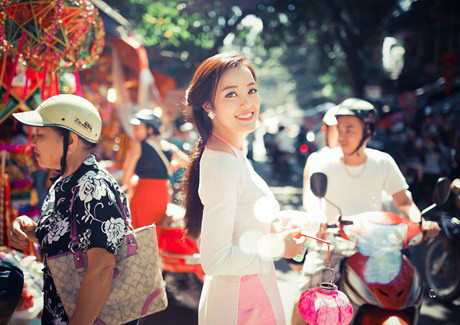 Cùng ngắm vẻ đẹp duyên dáng của Thu Huyền giữa phố Trung thu: