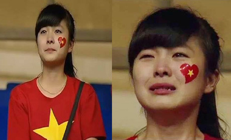 Và khi chứng kiến hình ảnh đối thủ đến từ Nhật Bản bước lên bục cao nhất, một nữ CĐV xinh đẹp rưng rưng rồi bật khóc ngon lành. Và khoảng khắc về cô gái đáng yêu được truyền hình trực tiếp đó nhanh chóng gây sốt trong cộng đồng mạng.