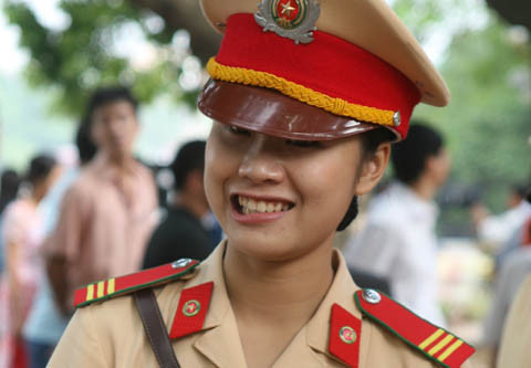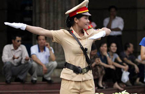 | Có nữ CSGT rồi, chúng ta mong rằng đường Thủ đô bớt tắc. |