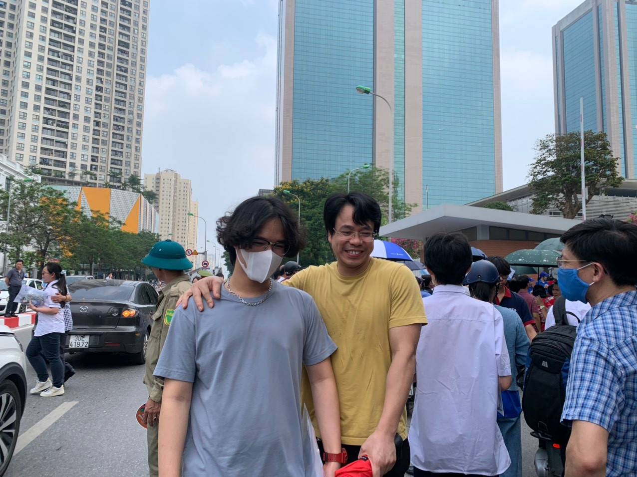 | Nhiều thí sinh vui vẻ ra khỏi phòng thi được bố mẹ đón |