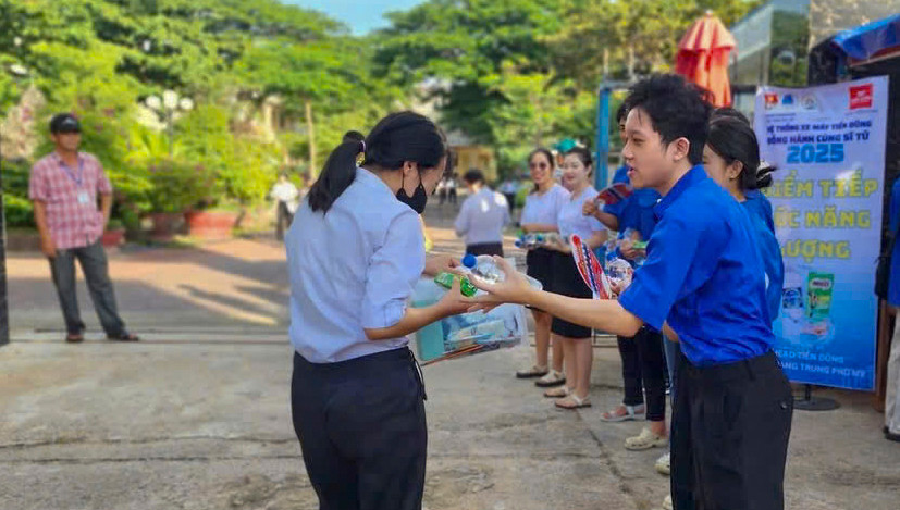 | Sáng 26/6, 31 đội Tiếp sức mùa thi với hơn 700 tình nguyện viên triển khai các hoạt động hỗ trợ sĩ tử vượt vũ môn, tiếp sức cho hơn 14,5 nghìn thí sinh trong ngày thi đầu tiên của kỳ thi tốt nghiệp THPT Quốc gia năm 2025. Ảnh: Giang Thanh |