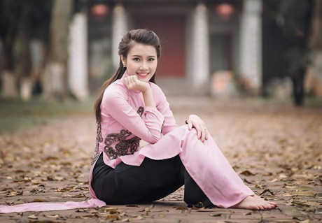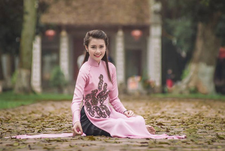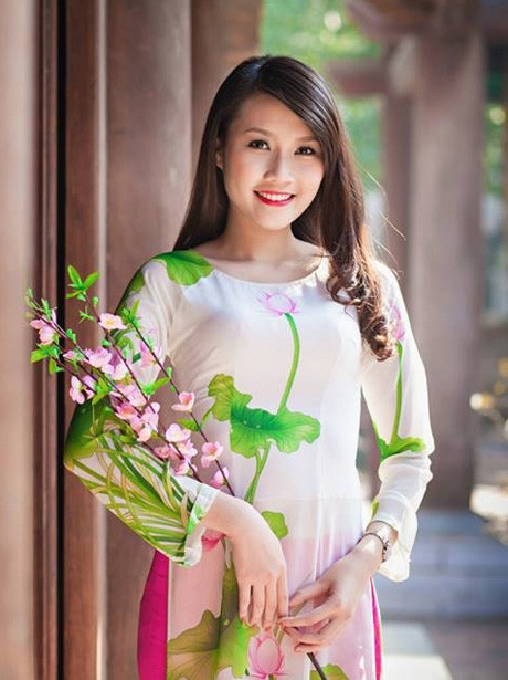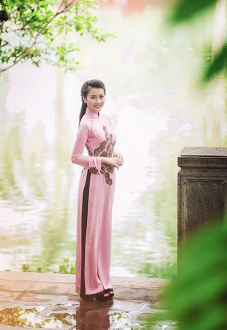Thanh Tú còn có niềm yêu thích sâu sắc với tà áo dài Việt. Khoác lên mình tà áo dài thướt tha, cô đã khoe trọn nét dịu dàng đằm thắm của thiếu nữ đương tuổi đôi mươi.