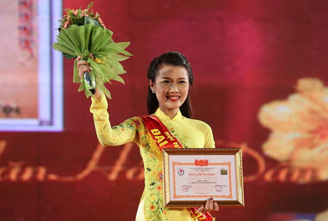 Thanh Tú trong giây phút đăng quang "Đại sứ nhân ái" của Hội Nhà báo VN.Thanh Tú hiện là sinh viên năm nhất khoa Quản lí kinh tế, Học viện Báo chí và Tuyên truyền. Không chỉ tài năng, xinh đẹp, cô nàng 9X này còn có thành tích học tập tốt, tích cực tham gia các hoạt động ngoại khóa và từ thiện.