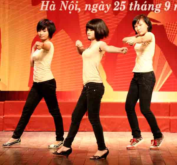 Không khí trong Nhà văn hóa Học sinh, sinh viên, Hội LHTN Việt Nam (TP. Hà Nội) ngày 25-9, được hâm nóng bởi những bài trình diễn của các nữ sinh. Trên nhiều nền nhạc sôi động, các cô gái đã thể hiện kỹ thuật nhảy chuyên nghiệp. Các động tác được các thành viên thực hiện đồng đều đã giúp các nhóm nữ "ăn" điểm của ban giám khảo.