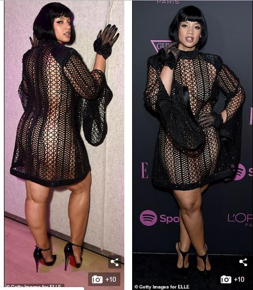 Nữ diễn viên mặc như không với váy lưới xuyên thấu gây choáng
