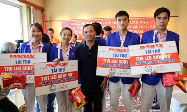 Trong một diễn tiến khác, chiều nay (5/6), tại khách sạn Swittotel the Stamford (Singapore), công ty Nguyễn Kim và công ty Hàng không Vietjet đã tổ chức trao thưởng nóng cho 4 VĐV Việt Nam đoạt HCV của môn đấu kiếm SEA Games 28.