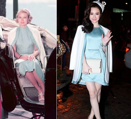 Rõ ràng Angela Phương Trinh đang sao chép hoàn toàn trang phục và phong cách của công nương Monaco Grace Kelly.