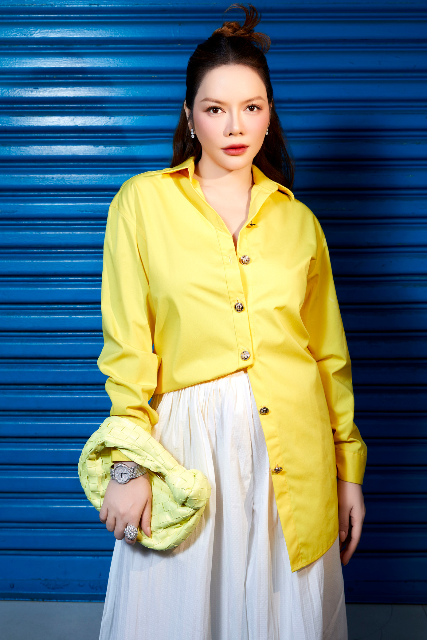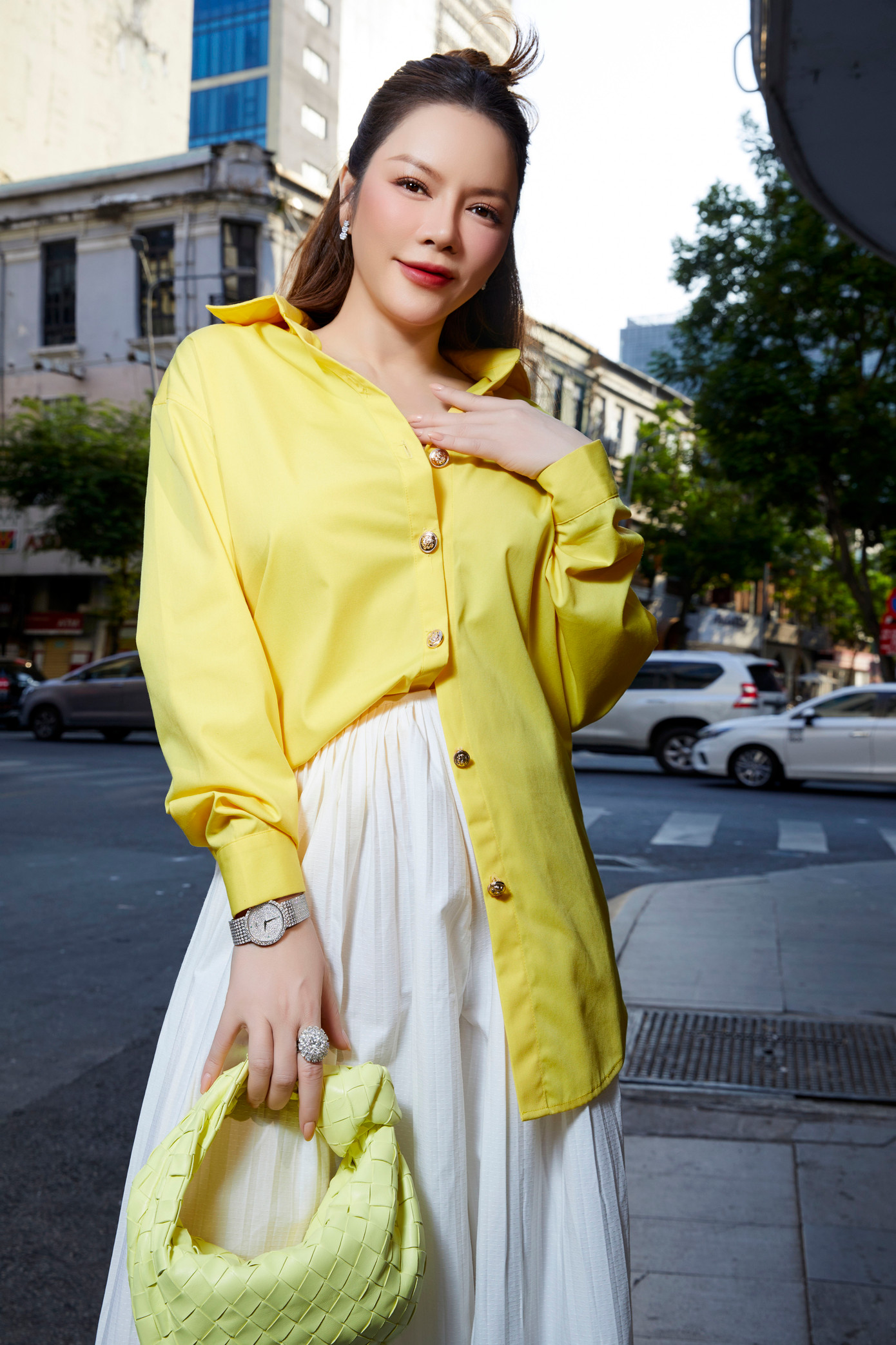 Lý Nhã Kỳ chọn 4 tông màu xuống phố trong bộ ảnh này. Tông màu vàng hòa hợp với không khí mùa Xuân tươi vui. Trang phục đơn giản với áo sơ mi bất đối xứng, quần ống rộng không cầu kỳ nhưng lại đẹp hút mắt. Và bí quyết ở đây chỉ đơn giản là tập trung vào sự tối giản, thoải mái nhưng đầy chất chơi.