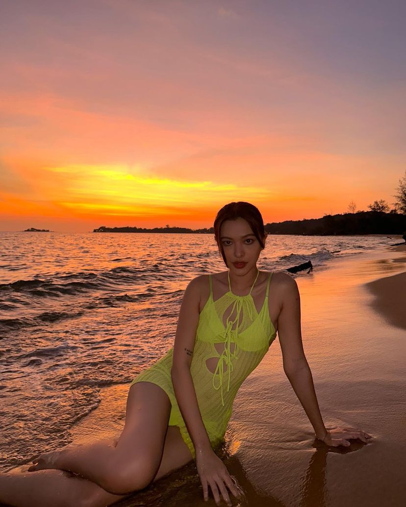 Dễ dàng nhận thấy áo tắm 2 mảnh luôn là lựa chọn hàng đầu giúp Tú Hảo khoe khéo vòng eo cùng đùi mật ong vô cùng sexy, quyến rũ.