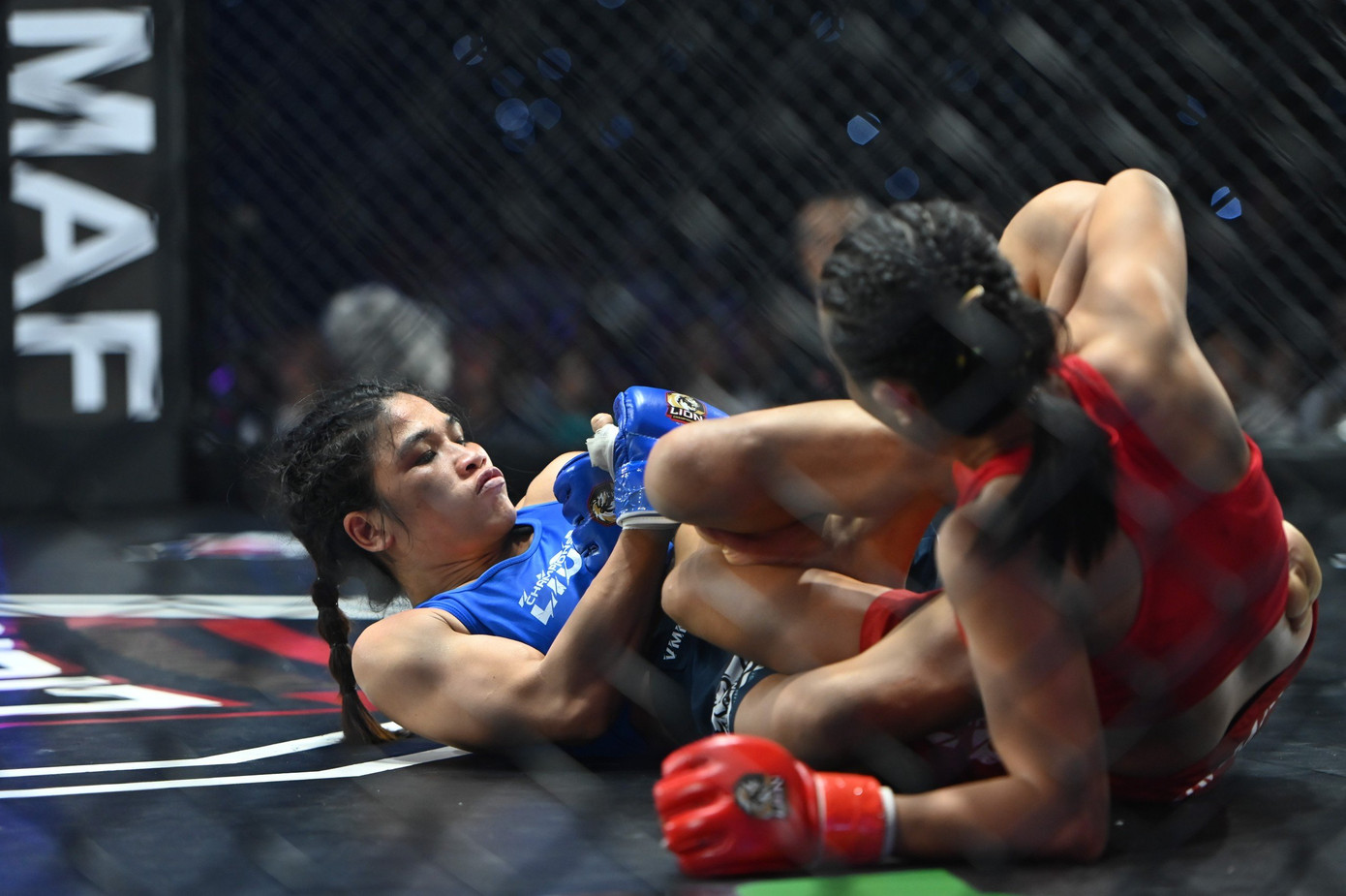 Các kỹ thuật khóa siết thực sự đã trở thành tâm điểm của đêm thi đấu Lion Championship 10. Hạng cân 65kg, đai đen nhu thuật tới từ Brazil - Felipe Negochadle đánh bại nhà vô địch MMA châu Á Nguyễn Tiến Long bằng đòn siết cổ từ phía sau (rear-naked-choke) của võ sĩ Brazil.