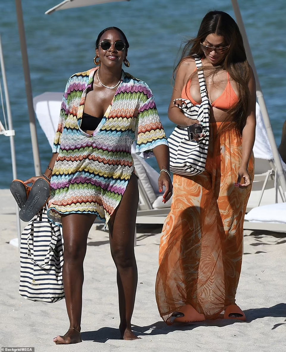 | 'Nữ hoàng R&B' diện bộ bikini màu đen, phô làn da rám nắng và thân hình săn chắc nóng bỏng. |
