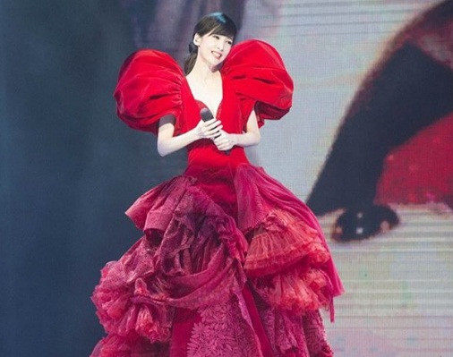 Diện đầm đỏ bồng bềnh như nữ hoàng, Châu Huệ Mẫn xinh đẹp tỏa sáng với làn da trắng mịn không tì vết.
