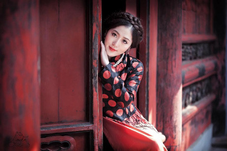 “Mình đã thực hiện rất nhiều bộ ảnh áo dài thông thường, có phần đơn điệu nên muốn dựng lại hình tượng người con gái xa xưa trầm tịch mà duyên dáng với tóc vấn, áo dài mang phong cách, màu sắc truyền thống và không gian cổ kính”, Thanh Tâm chia sẻ.