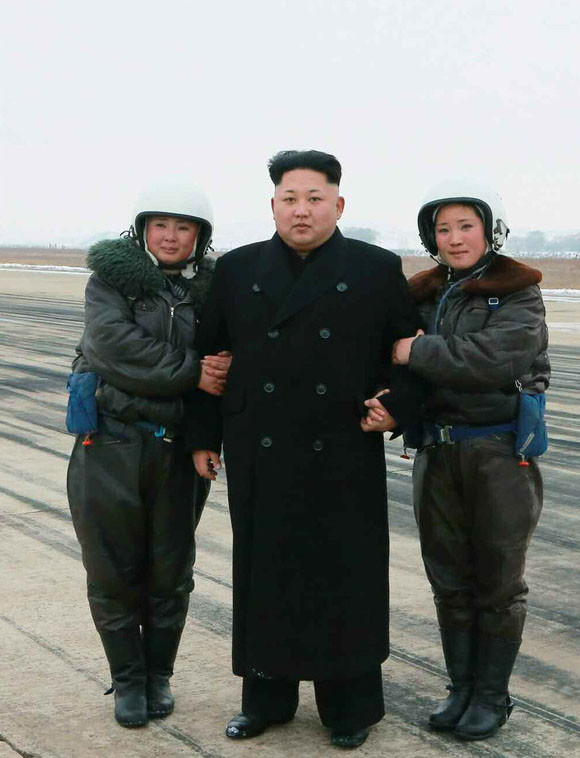 Nhà lãnh đạo Triều Tiên chụp ảnh với các nữ phi công chiến đấu.