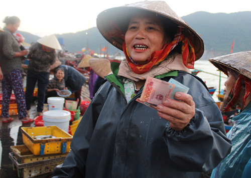 Tiền công nữ phu cá Đậu Thị Thanh được trả sau một ngày lao động vất vả