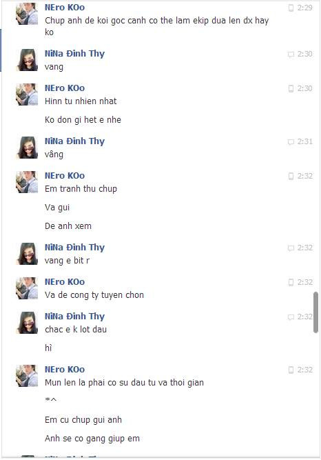 Bà Tưng 2.0 mới 13 tuổi vừa tung lên Facebook những tin nhắn mà ê-kíp của Bà Tưng đã mời gọi cô về làm "gà".