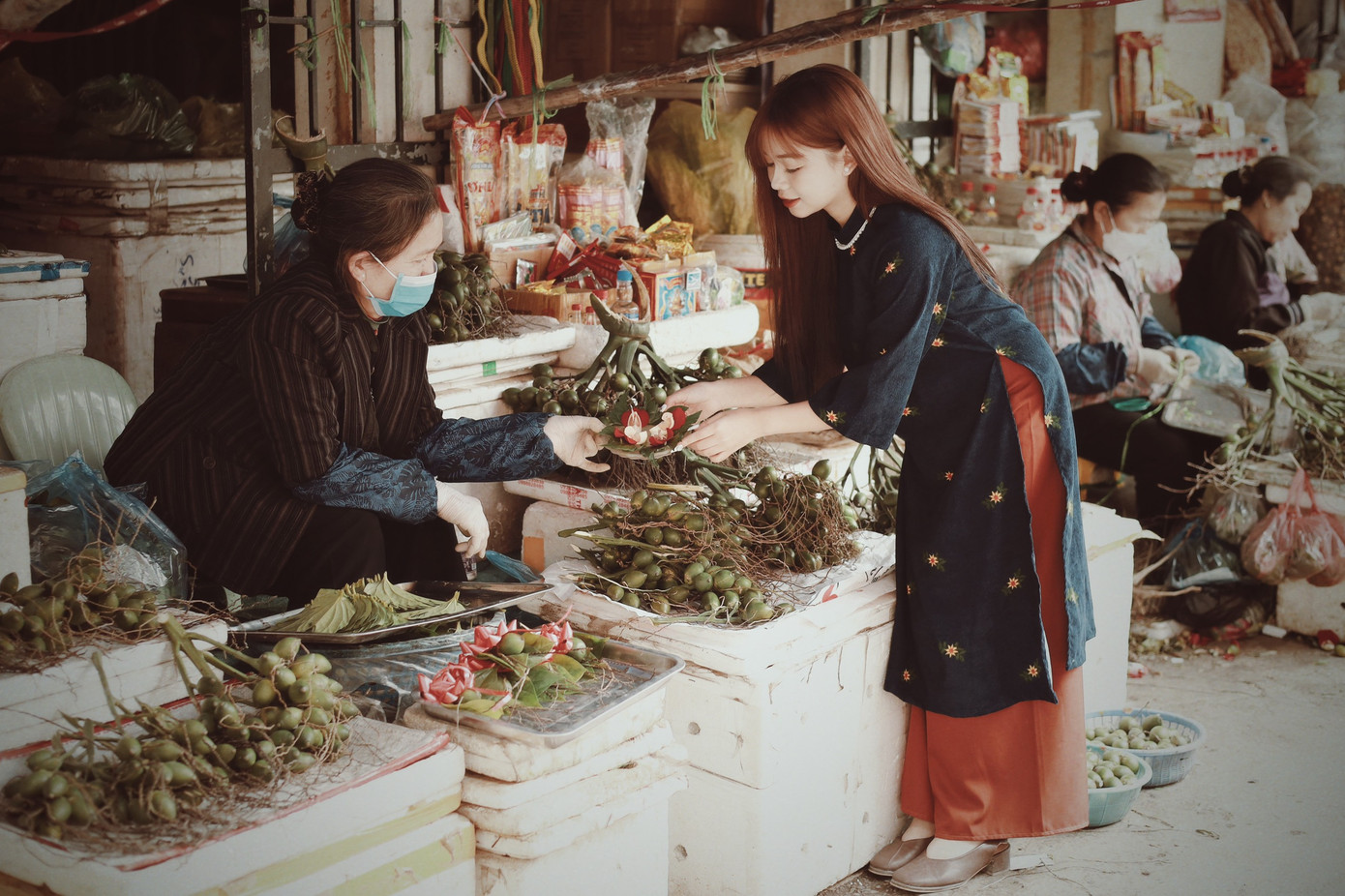Bộ ảnh của Hà Phương được lấy bối cảnh tại Chợ Đồng Xuân – một ngôi chợ lớn nhất nằm trong khu phố cổ Hà Nội, có lịch sử tồn tại hàng trăm năm từ thời phong kiến nhà Nguyễn. Với những hình ảnh gắn liền với Tết Việt như áo dài, miếng trầu, nhành hoa, Hà Phương đã mang đến hình ảnh Tết rất thân thuộc và ấm áp.