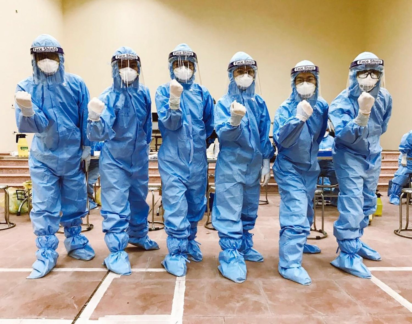 | Tinh thần quyết tâm của đội sinh viên tình nguyện chống dịch tại huyện Thuận Thành, tỉnh Bắc Ninh. |