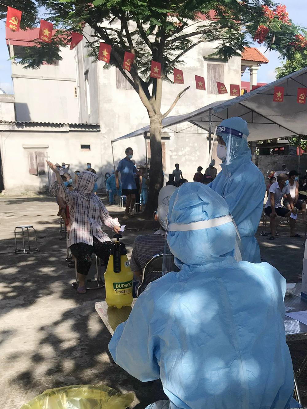 | Dưới thời tiết nắng nóng, các cán bộ y tế luôn cố gắng hoàn thành tốt nghiệm vụ. |