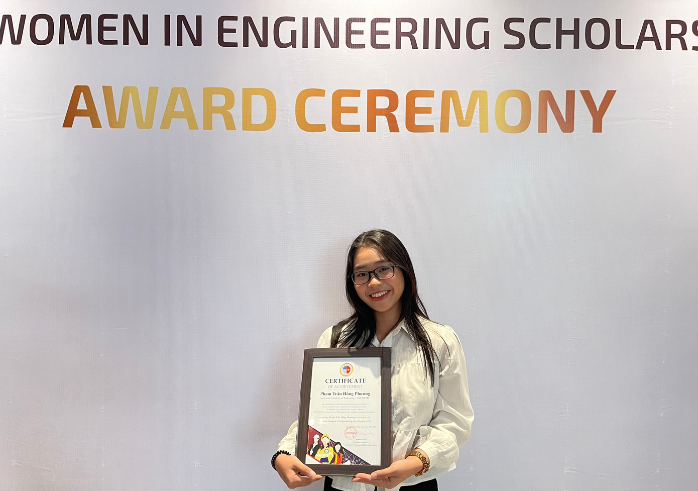 Mới đây, Phương xuất sắc được nhận Học bổng AmCham Women In Engineering 2023. Được biết, đây là học bổng nhằm khuyến khích và hỗ trợ sinh viên nữ theo học các lĩnh vực khoa học, công nghệ, kỹ thuật và toán học (STEM) và theo đuổi sự nghiệp trong lĩnh vực STEM. Phương đã phải trải qua 3 vòng đánh giá khắt khe gồm lọc hồ sơ, kiểm tra năng lực ngoại ngữ và phỏng vấn tiếng Anh trực tiếp với nhân sự cấp cao và đối tác của AmCham Vietnam trước khi trở thành một trong những bóng hồng ưu tú của Bách khoa đạt được thành tích này.