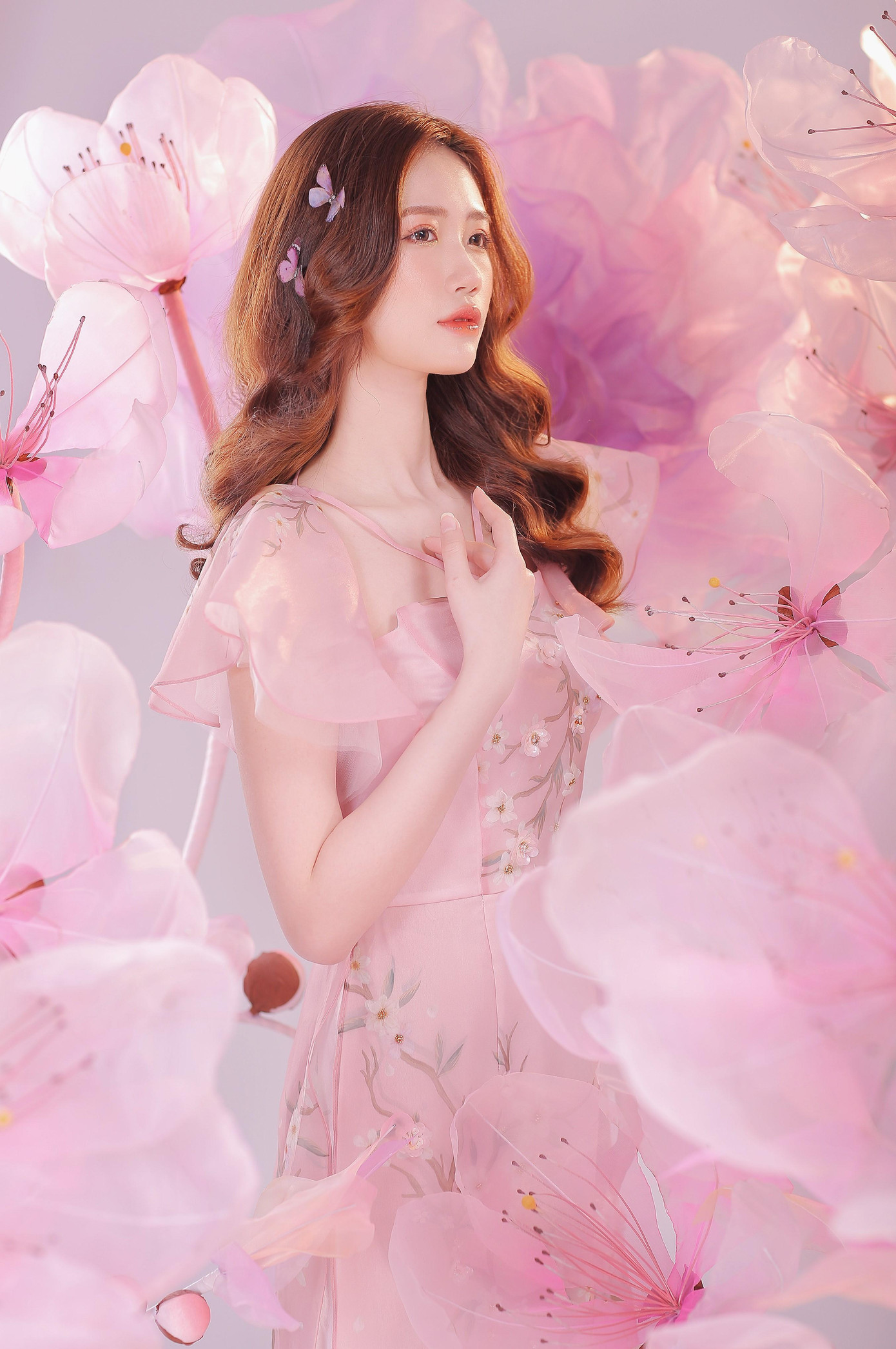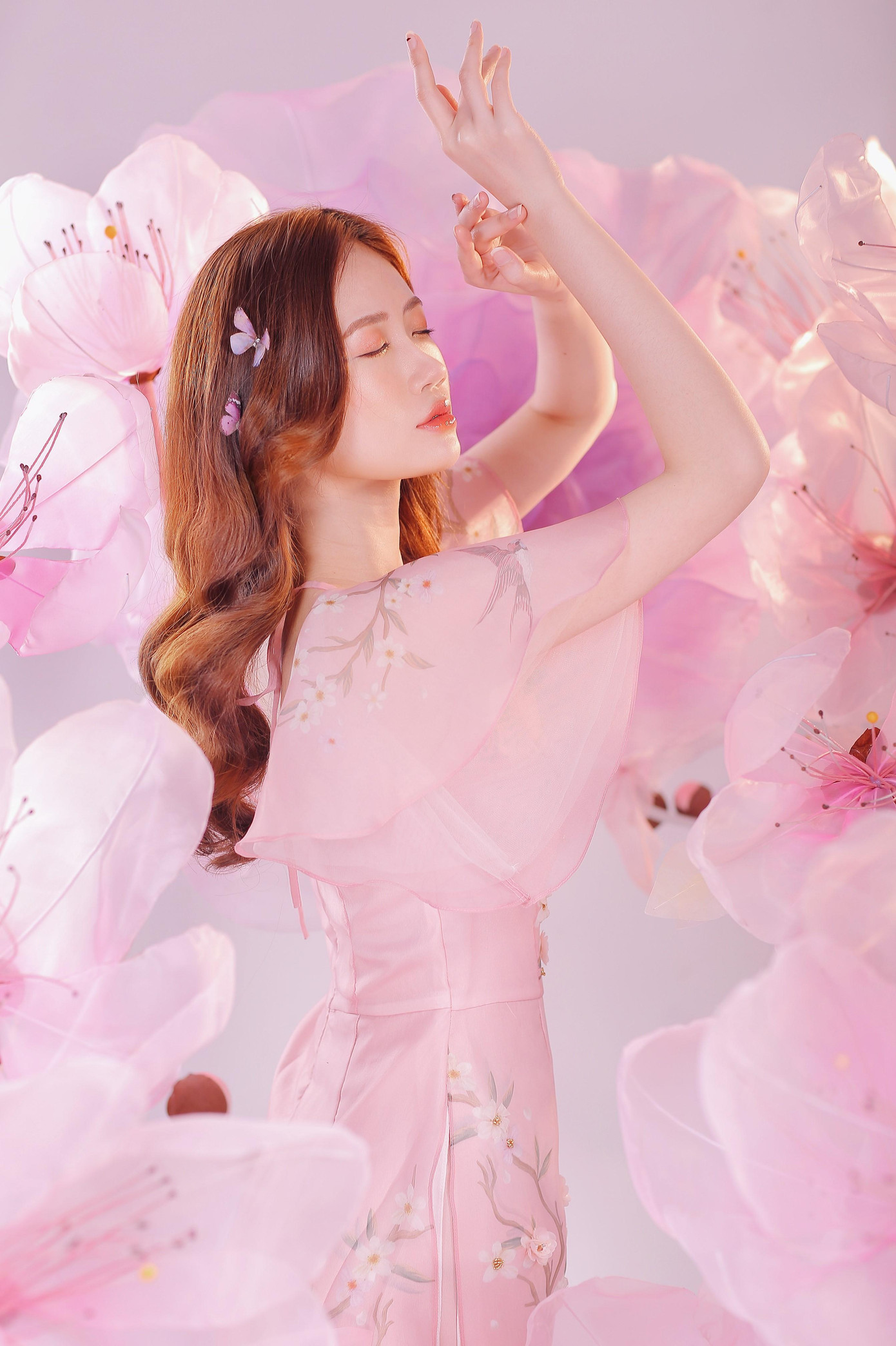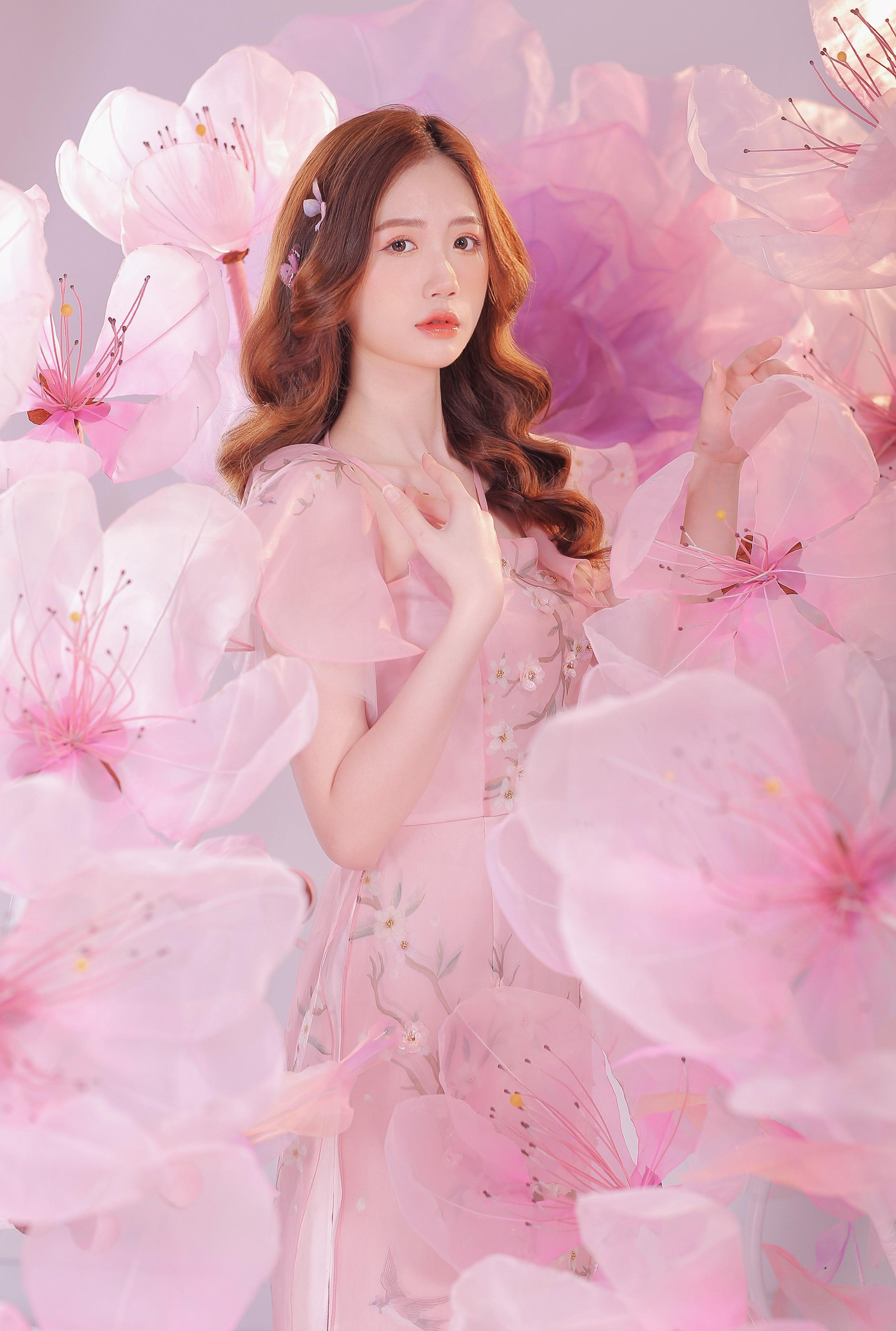 | Lựa chọn áo dài hồng giữa vườn đào rực rỡ, Lan Nhi 'hoá' nàng công chúa yêu kiều, mộng mơ. Ảnh: Ngô Văn Long |
