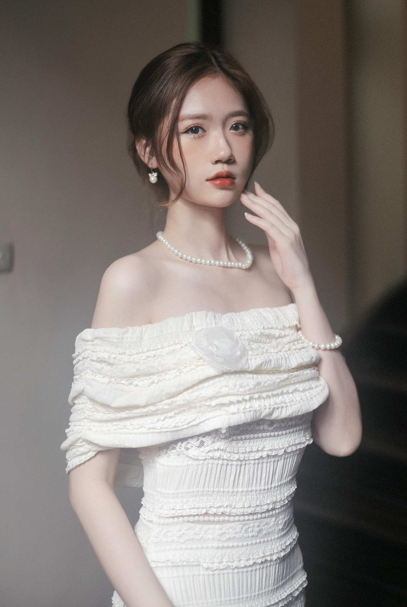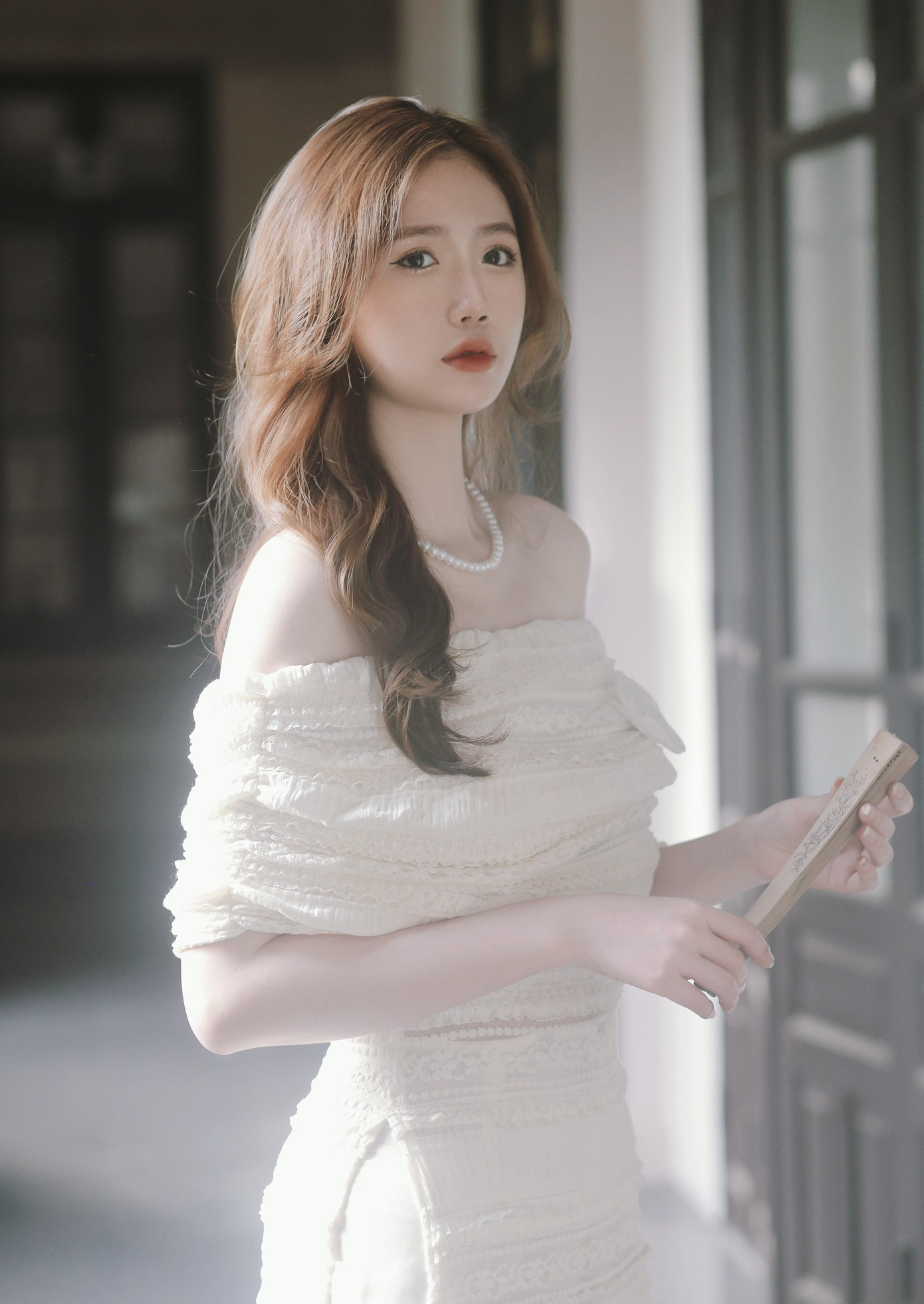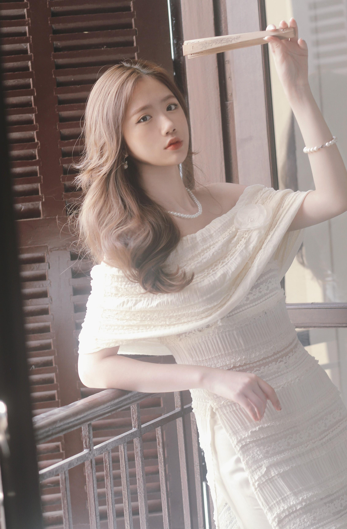 | Lan Nhi hóa quý cô yêu kiều, cổ điển trong chiếc váy trắng dịu dàng. Ảnh: Minh Kiên |
