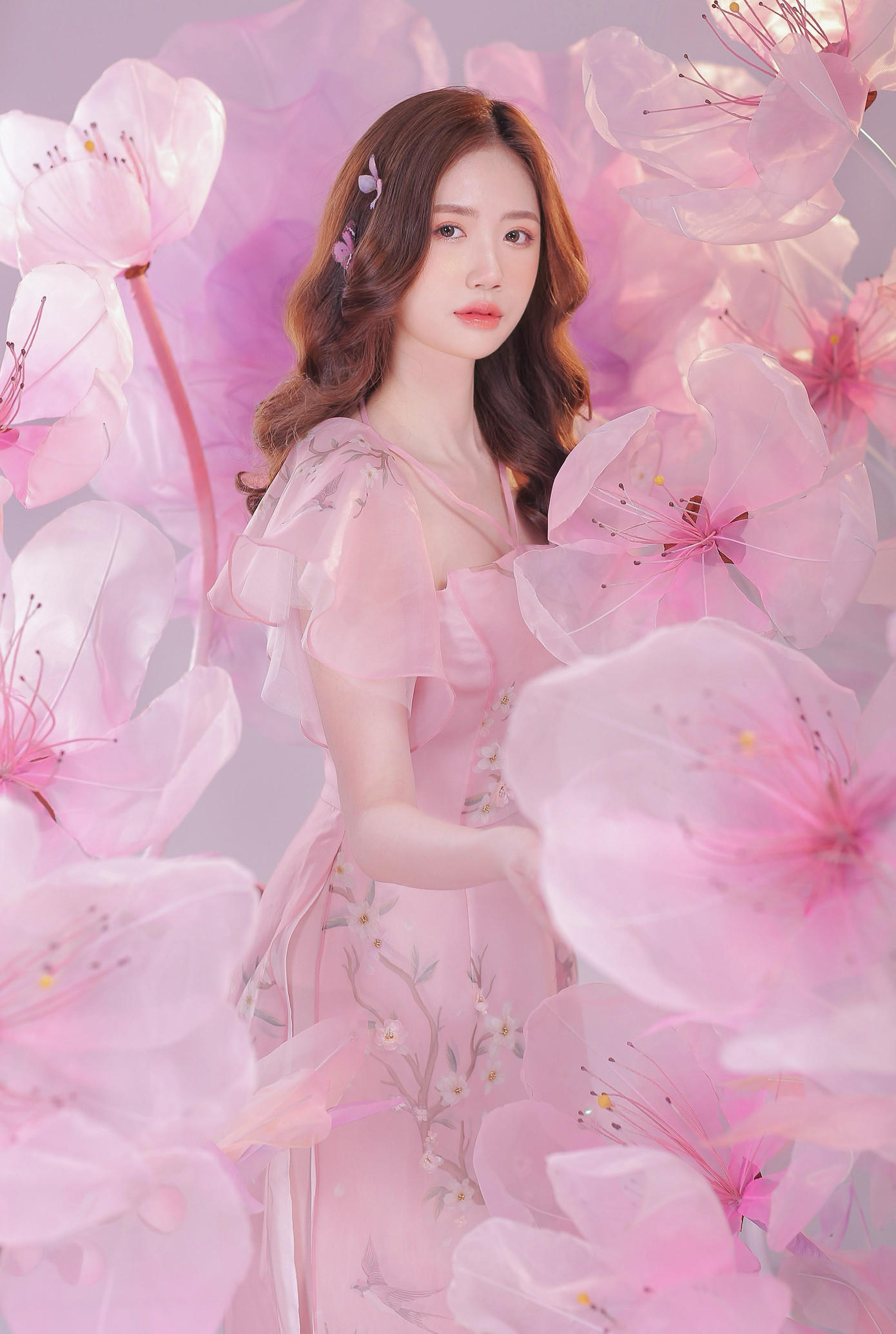 Lựa chọn áo dài hồng nhẹ cùng chiếc váy trắng mang hơi hướng cổ điển, Lan Nhi như hoá thân thành một nàng công chúa yêu kiều, mộng mơ. Nữ sinh cho biết, bản thân muốn chào đón 2022 một cách đầy tự tin và hạnh phúc.