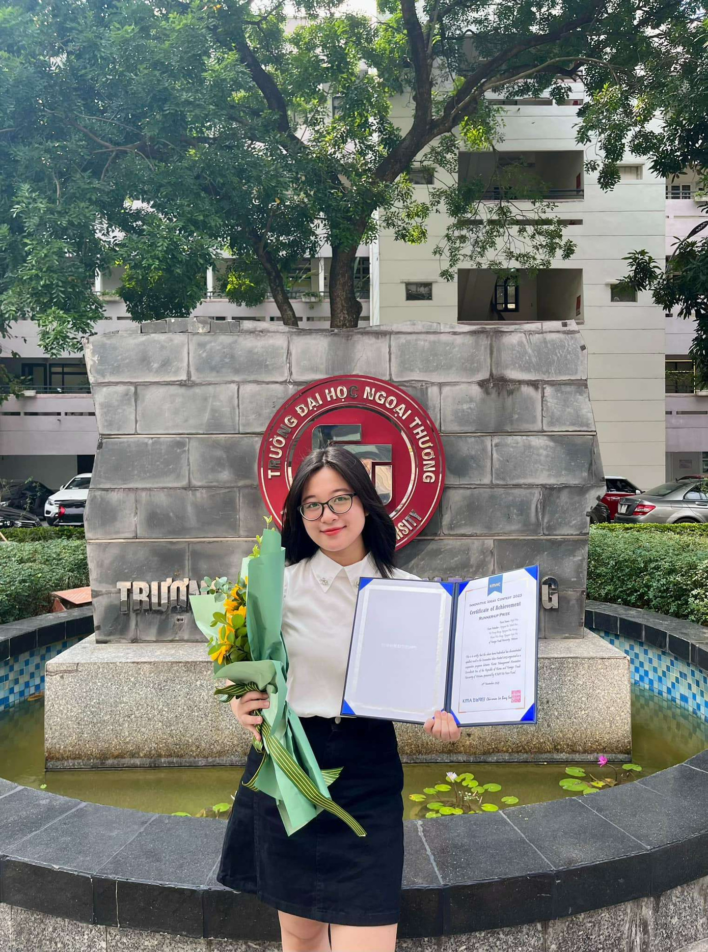 Bên cạnh các cuộc thi liên quan đến kinh doanh, khởi nghiệp, Ngọc Hà còn tham gia các cuộc thi tài năng tiếng Anh để rèn giữa kỹ năng ngôn ngữ. Dù xuất phát là một học sinh chuyên ngữ của trường THPT chuyên Hưng Yên và sở hữu chứng chỉ ngoại ngữ IELTS 8.0, Hà luôn nhận thức bản thân mình cần phải nỗ lực hơn nữa, thử sức tại các “đấu trường Anh ngữ” để biết năng lực của bản thân đến đâu và cố gắng để phát triển qua từng ngày. Vừa rồi, Hà đã may mắn lọt vào vòng chung kết Cuộc thi Tài năng Anh ngữ dành cho học sinh, sinh viên Thủ đô lần thứ VII do Ban Chỉ huy Thành đoàn Hà Nội tổ chức.