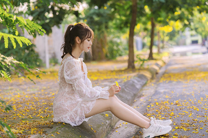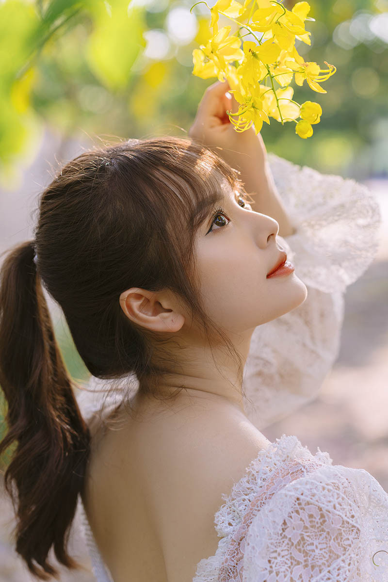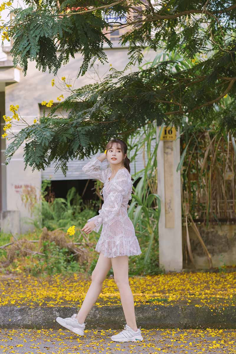 Bộ ảnh khoe sắc dưới dàn hoa muồng hoàng yến vàng rực của cô bạn 9x thu hút sự quan tâm và nhận nhiều lời khen ngợi của cộng đồng mạng.