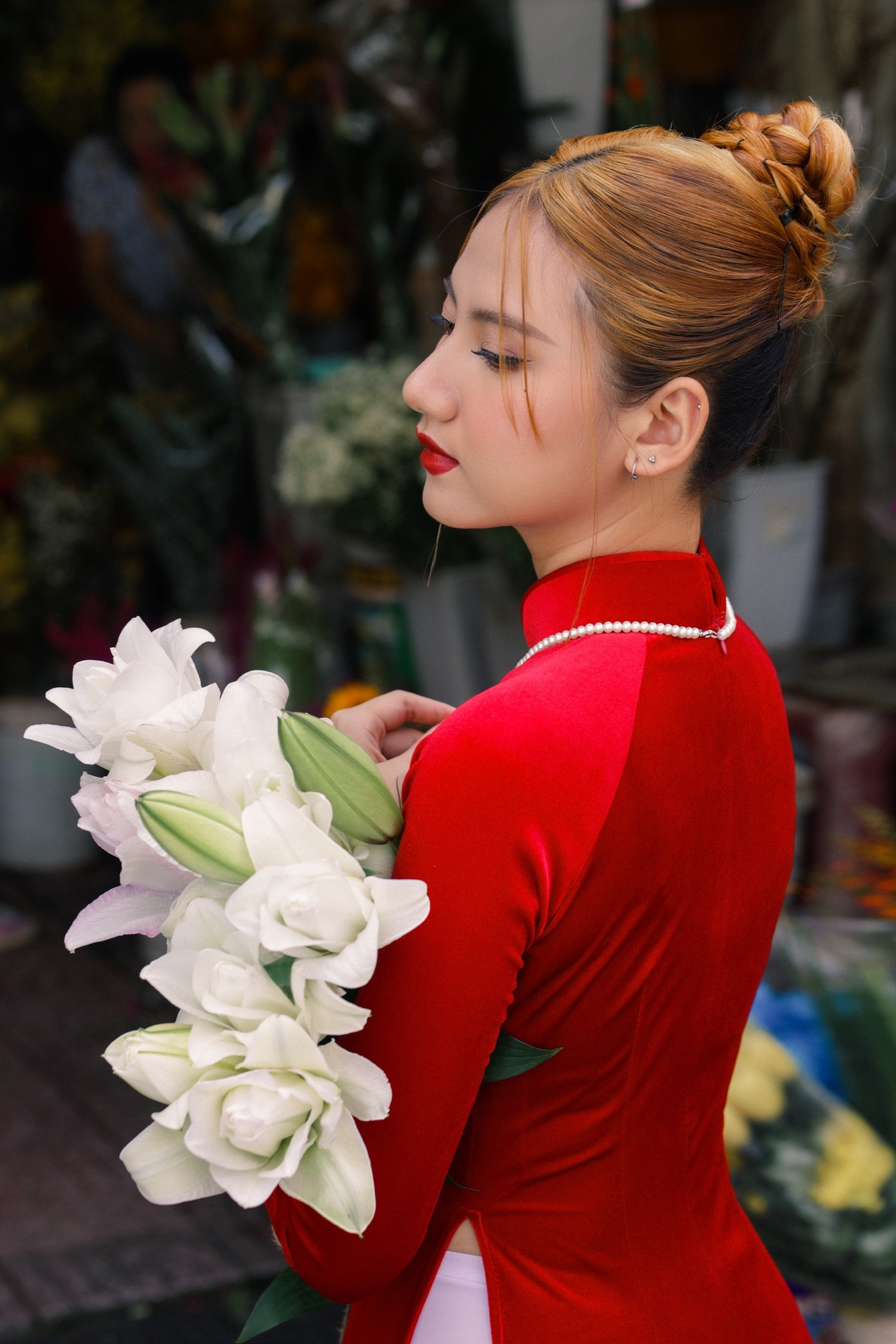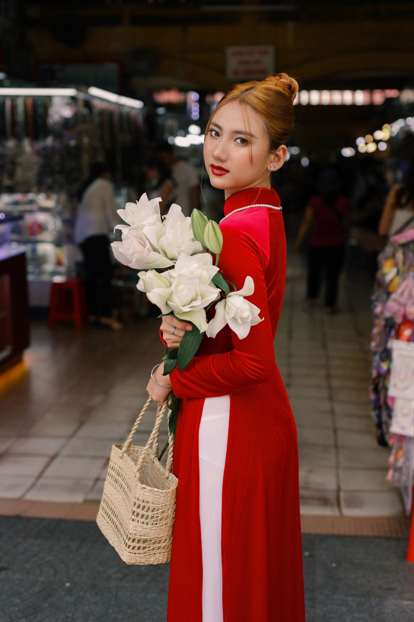 Cảm hứng thực hiện bộ ảnh này đến với mình rất tình cờ, vào một ngày nọ, mình chợt nhận ra rằng: “Một mùa Tết nữa sắp đến với chúng ta, thế nhưng có phải hơi vội vàng và tấp nập?”. Lúc đó, trong mình lại cảm thấy bồi hồi và hoài niệm một chút. Mình cho rằng, dù cuộc sống ngày càng hiện đại và phát triển, song những giá trị truyền thống vẫn luôn là một điều gì đó rất đẹp và cần phải giữ gìn. Mình muốn tìm về một chút gì đó hoài cổ, đằm thắm của người con gái ở Sài Gòn hoa lệ nhưng vẫn có nét hiện đại, khỏe khoắn của thế hệ Gen Z. Do đó, bộ ảnh ra đời với tên gọi “Xuân 20”, được thực hiện tại Chợ Bến Thành – một địa điểm vô cùng thân thuộc với những người con của Sài Gòn.
