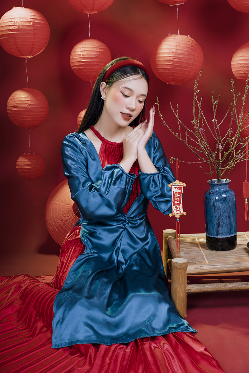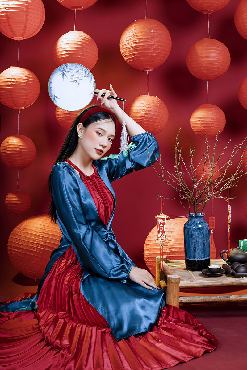 Với tên gọi “Sắc Tết”, bộ ảnh là sự kết hợp hài hòa, nổi bật giữa những gam màu sắc đặc trưng của ngày Tết cổ truyền tại Việt Nam. Bộ trang phục cũng là một trong số những điểm nhấn mà Quỳnh Trang muốn đưa vào gửi gắm, bởi đó giống như sự hòa quyện giữa nét nhẹ nhàng truyền thống và sự năng động của thế hệ Gen Z.