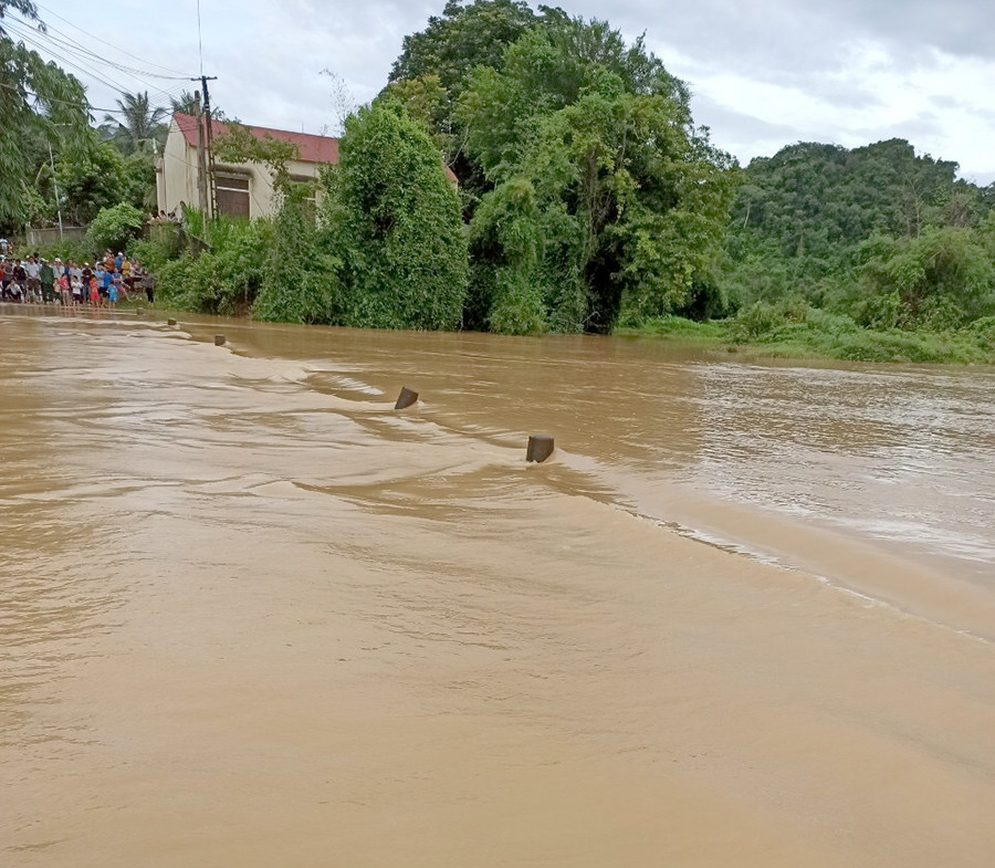 Hiện, vị trí cầu tràn xảy ra tai nạn giao thông đang bị chia cắt do nước lũ lên cao.