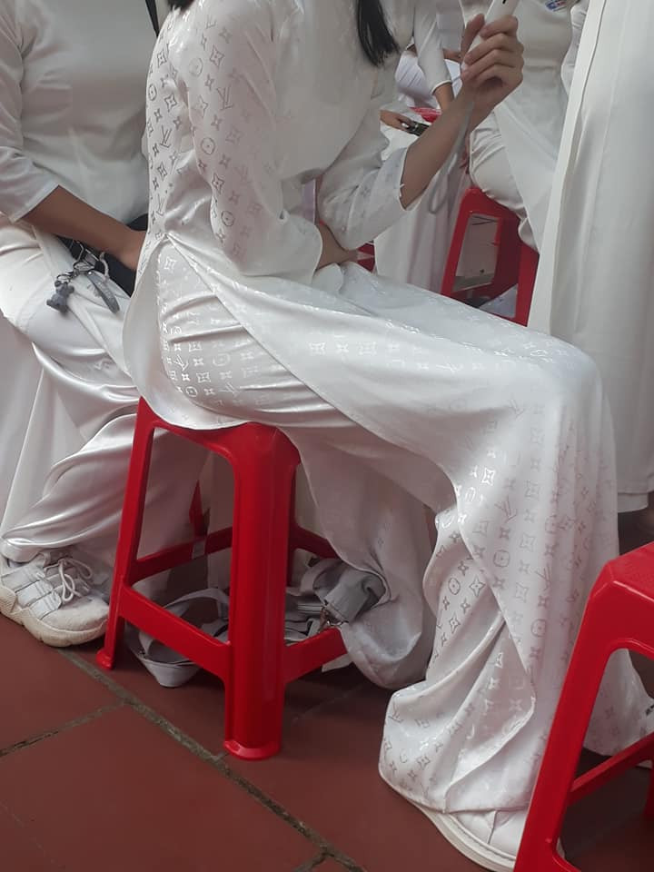 Chiếc áo dài trắng bạn nữ sinh này mặc được in logo dập chìm của một hãng thời trang nổi tiếng đắt đỏ khiến người xem ai cũng phải trầm trồ. (Ảnh: Linh Trang Hoang) Ngay sau khi hình ảnh này được chia sẻ lên mạng xã hội, rất nhiều dân mạng đã để lại bình luận cũng như lượt bày tỏ cảm xúc. Đa số đều "trầm trồ" với bộ áo dài của cô bạn này.
