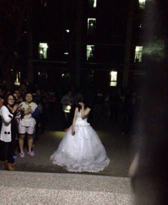 Trước đó, trên diễn đàn của Đại học Tây Bắc xuất hiện dòng chia sẻ: "Tôi biết chuyện này khá đường đột, nhưng bây giờ tôi đang chạy vội tới khu ký túc Tây Bắc với chiếc váy cưới. Tôi không có micro hay loa. Tôi đã đi mượn váy cưới. Xin hãy giúp tôi nếu bạn đọc được tin nhắn và có mặt ở ký túc xá. Tôi sẽ đến đó vào khoảng 11 giờ tối, đứng trước tòa nhà. Anh ấy học chuyên ngành Địa lý. Xin hãy tới”.