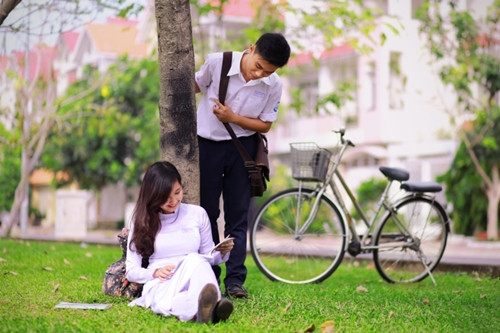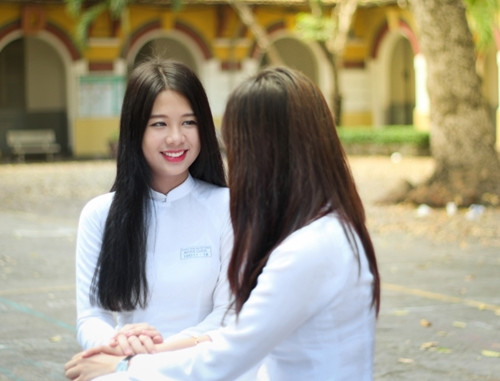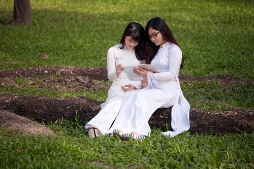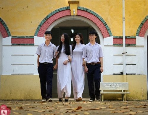 Đang trong giai đoạn nước rút bầu chọn, bộ ảnh mới nhất của các thí sinh đang được chia sẻ trên fanpage, diễn đàn của trường để kêu gọi bạn bè vote. Nổi bật trong đó là hình ảnh những cô cậu học trò trong màu áo trắng. Các nữ sinh khoe vẻ dịu dàng, e thẹn với tà áo dài trắng tinh khôi.