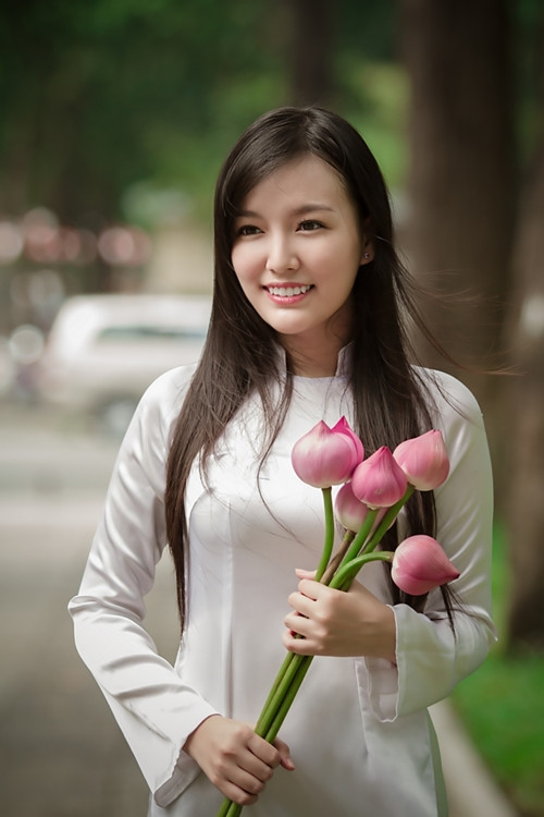 Nữ sinh Lương Hồng Xuân Hương khoe sắc cùng với quốc hoa Việt Nam.