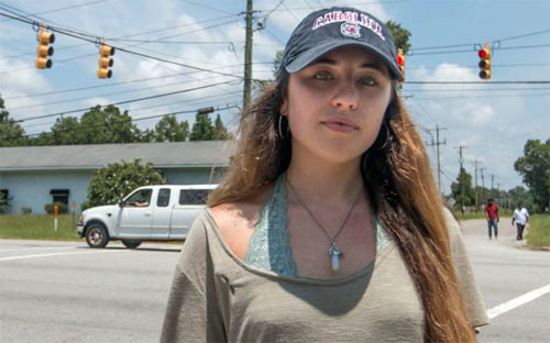Jordan Dinsmore, nữ sinh trường Công nghệ Midlands (Columbia, South Carolina, Mỹ), cố ý chạy quá lối rẽ mà những kẻ bắt cóc ra lệnh trên đường Bluff, phía nam Columbia.