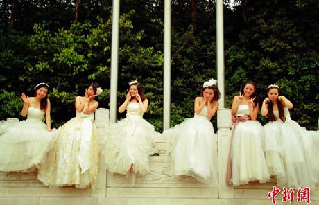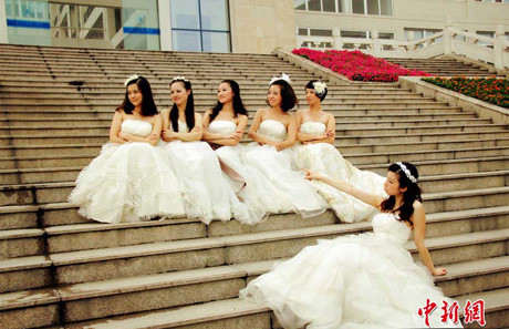 | 6 cô gái của trường ĐH tại Tứ Xuyên quyết định thực hiện ảnh ngày tốt nghiệp trong trang phục cô dâu . |
