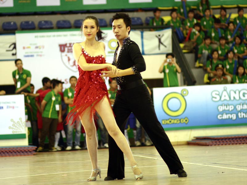 Đặc biệt là khi Phương Ngọc cùng bạn diễn mang đến bước nhảy sôi động, nhanh gọn và uyển chuyển. Khán giả có mặt trong nhà thi đấu Thanh Trì dành nhiều tràng pháo tay cho nữ sinh Ngoại thương này.