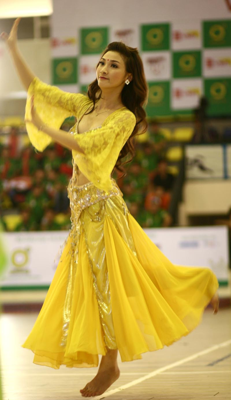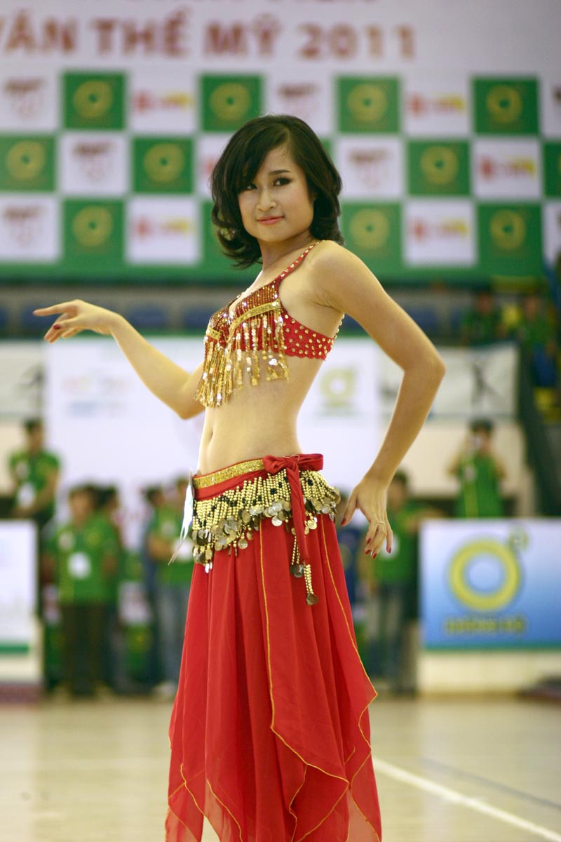 | Diệu Quỳnh (Đại học Khoa học Tự nhiên) dự thi bằng múa bụng (belly dance). |