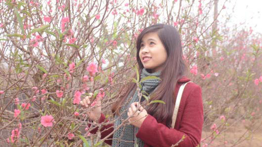 TPO - Mùa hoa đào nở rộ khoe sắc đã đến, hãy cũng ngắm những nữ sinh duyên dáng bên những bông hoa đào đỏ thắm trong tiết trời đông của Hà Nội.