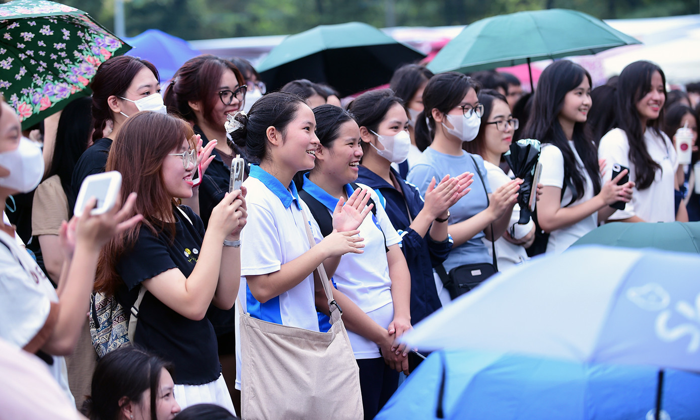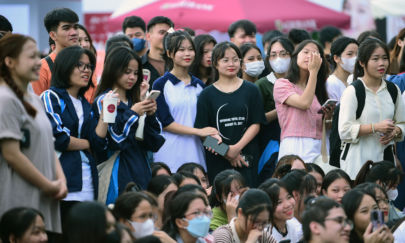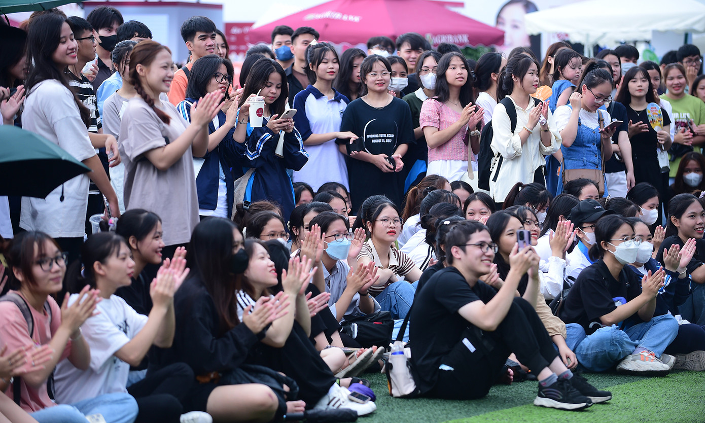 | Bên cạnh trải nghiệm tại các gian hàng, 'Sóng Festival' là nơi để giới trẻ gặp gỡ với các nghệ sĩ nổi tiếng. Trong sáng 7/10, đông đảo sinh viên đã hòa mình vào không gian âm nhạc dân gian, hát xẩm được thể hiện với phong cách trẻ trung, hiện đại của ca sĩ Hà MyO - 'Gương mặt trẻ Việt Nam tiêu biểu' năm 2022. Ảnh: Xuân Tùng |