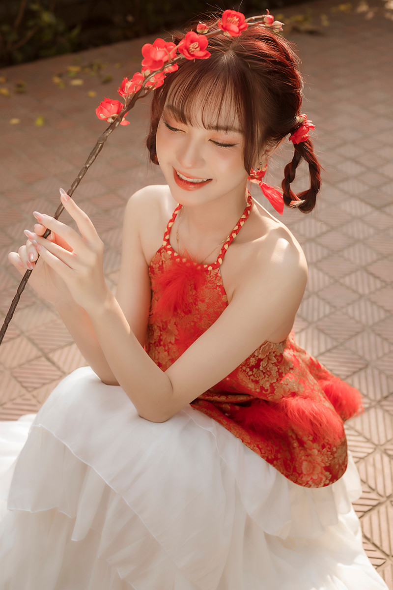 SVO - Chào đón năm mới nhẹ nhàng cùng không gian nghệ thuật đương đại với trang phục yếm đỏ pha chút hiện đại, tinh nghịch nhưng không quá phô trương. Thúy Hạnh yêu kiều giống như một “nàng thơ” trong bộ ảnh đón Xuân gây xao xuyến cộng đồng mạng.