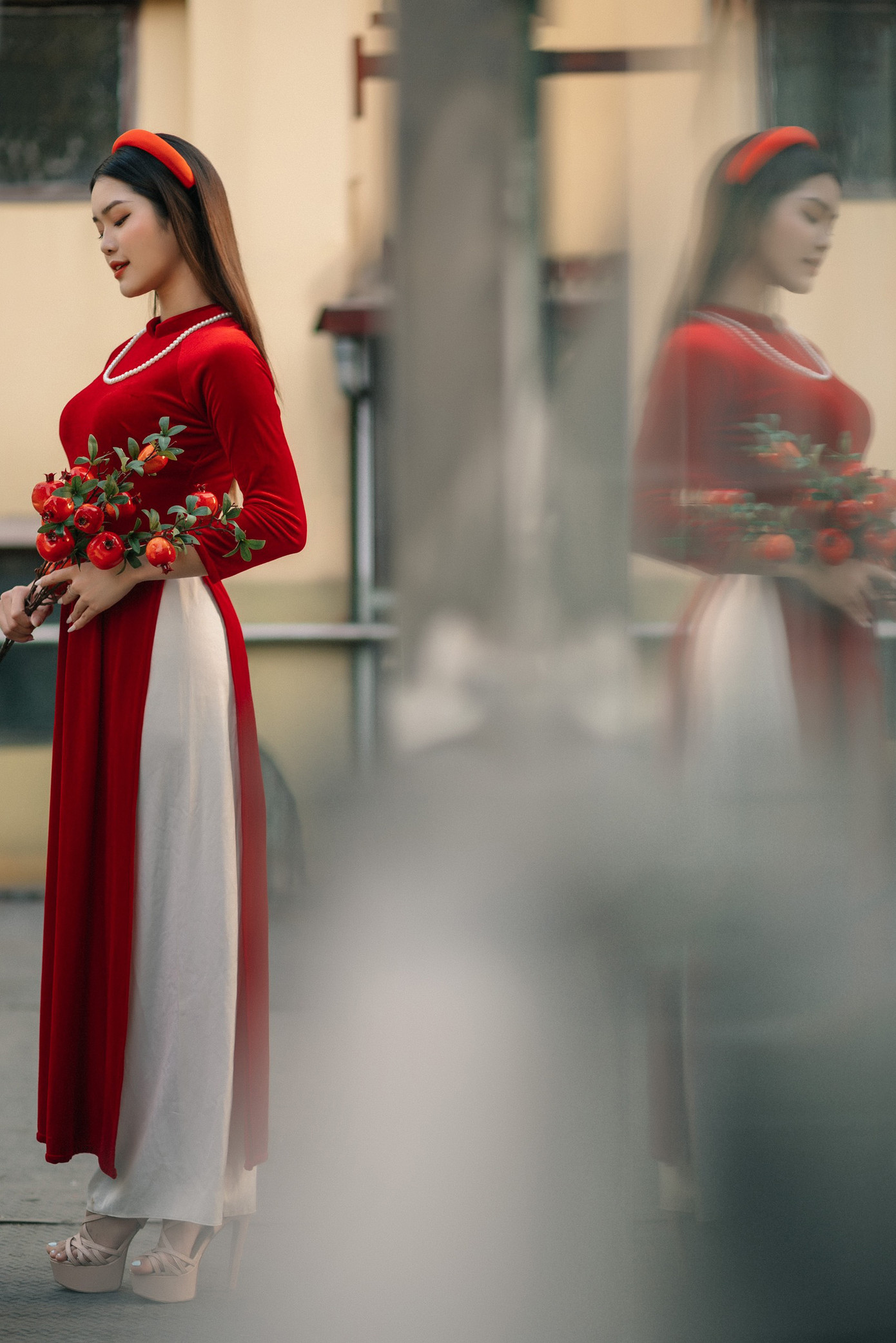 Trần Thị Thanh Nhật (sinh năm 2002) sinh ra và lớn lên tại Thái Bình. Thanh Nhật hiện đang là sinh viên Học viện Tài chính – Đại học Toulon. Bên cạnh đó, cô bạn cũng đang được biết đến là người mẫu ảnh tự do. Lấy cảm hứng từ những điều giản dị nhất, Thanh Nhật lựa chọn ghi lại dấu ấn và chào đón năm mới với hình ảnh người con gái Việt trong tà áo dài nhẹ nhàng, đằm thắm.