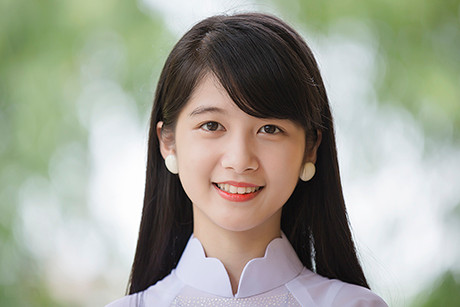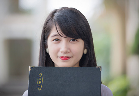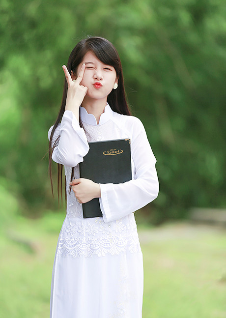 Làn da trong veo và nụ cười tỏa nắng cùng những biểu cảm đáng yêu của Ly được cư dân mạng khen ngợi hết lời. Bộ ảnh được chụp tại trường THPT Gang thép Thái Nguyên, nhằm lưu giữ lại những hình ảnh đẹp của tuổi 18 của cô gái.