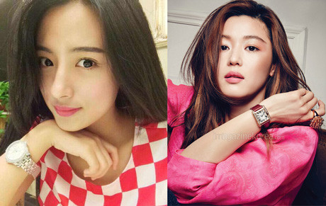 Cư dân mạng TQ cho rằng Chen Nina (trái) có khuôn mặt xinh đẹp tựa diễn viên Hàn Quốc Jeon Ji Hyun.