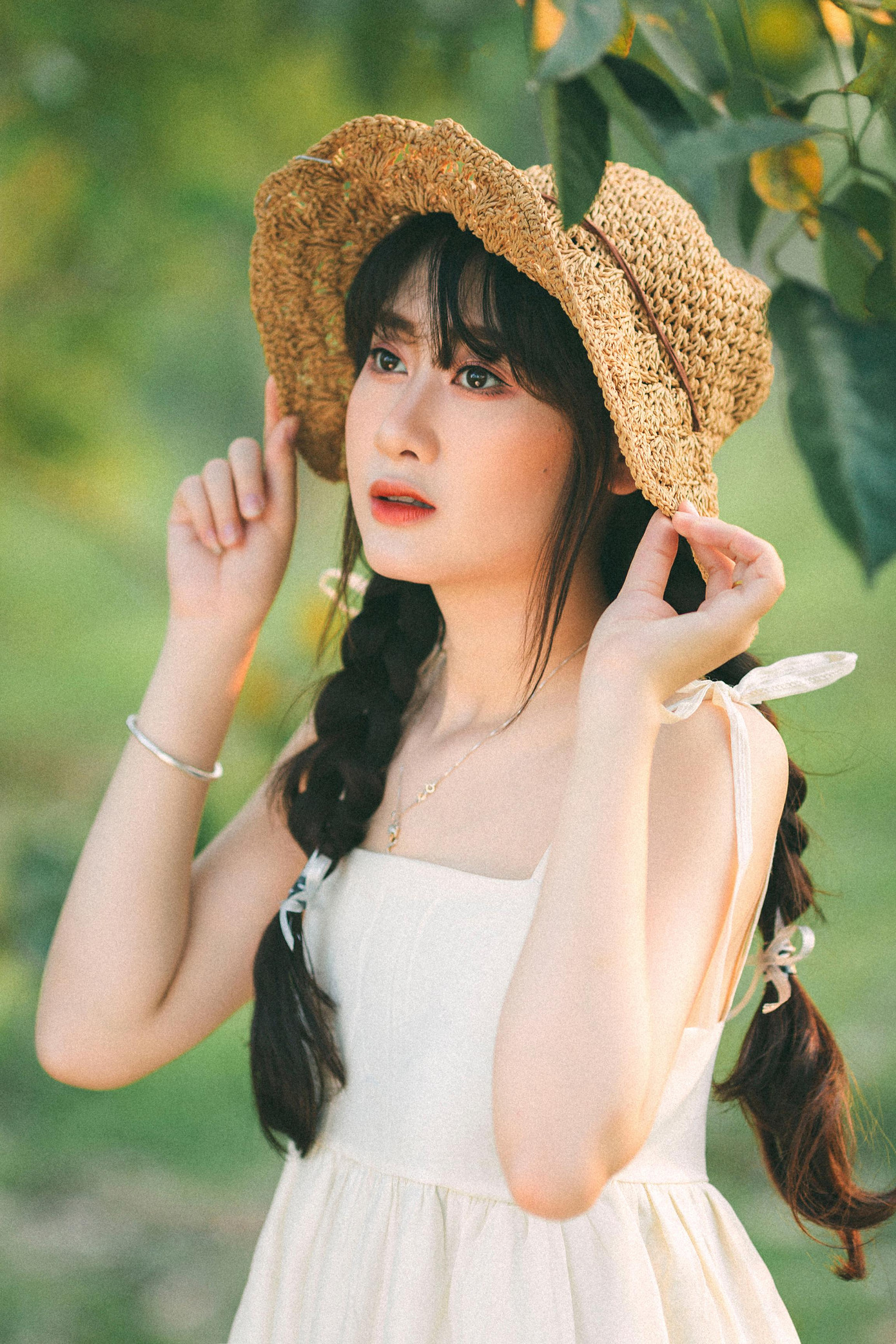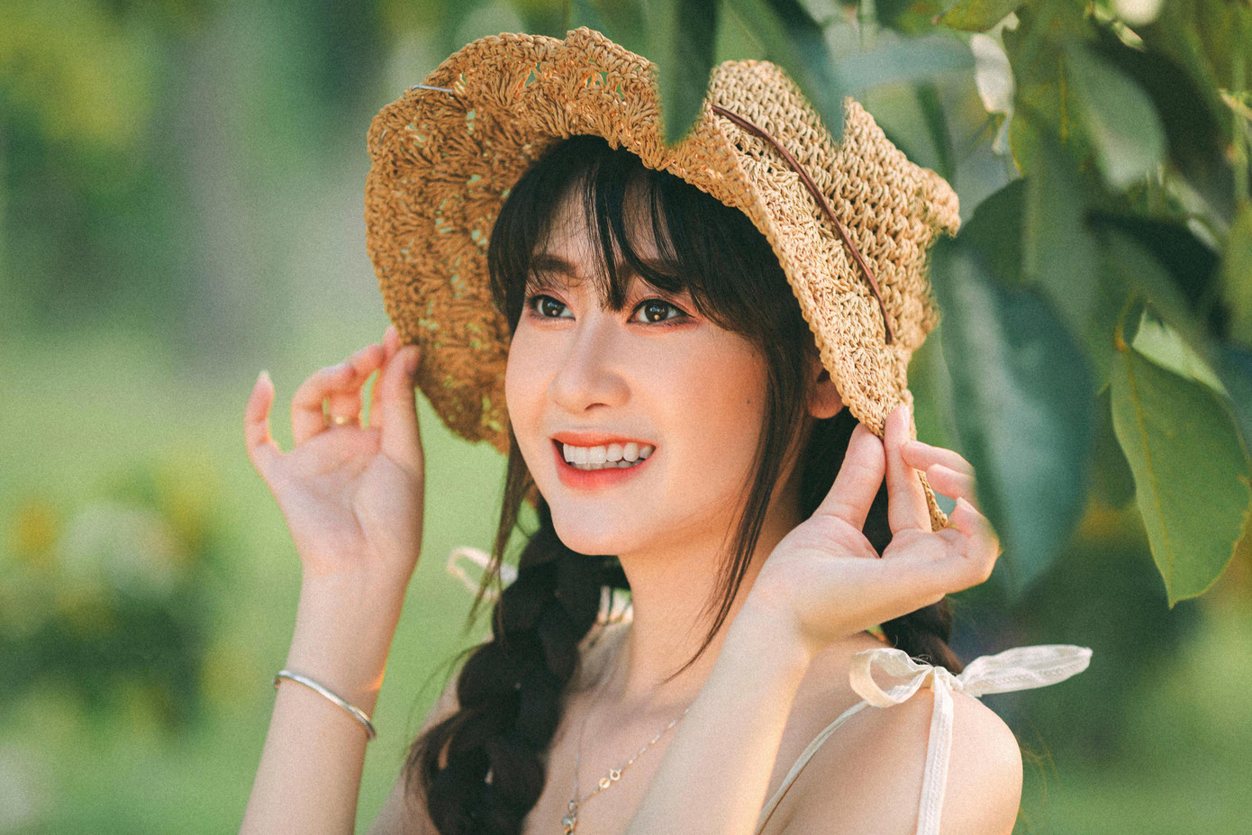 Mới đây, người mẫu ảnh sinh năm 2000 đã khiến cộng đồng mạng không thể rời mắt khỏi bộ ảnh nàng thơ cực kỳ trong sáng. Bối cảnh được Huyền Nhi lựa chọn là khu đô thị Thanh Hà, nơi có rất nhiều cây xanh tạo cảm giác vô cùng mát mẻ.