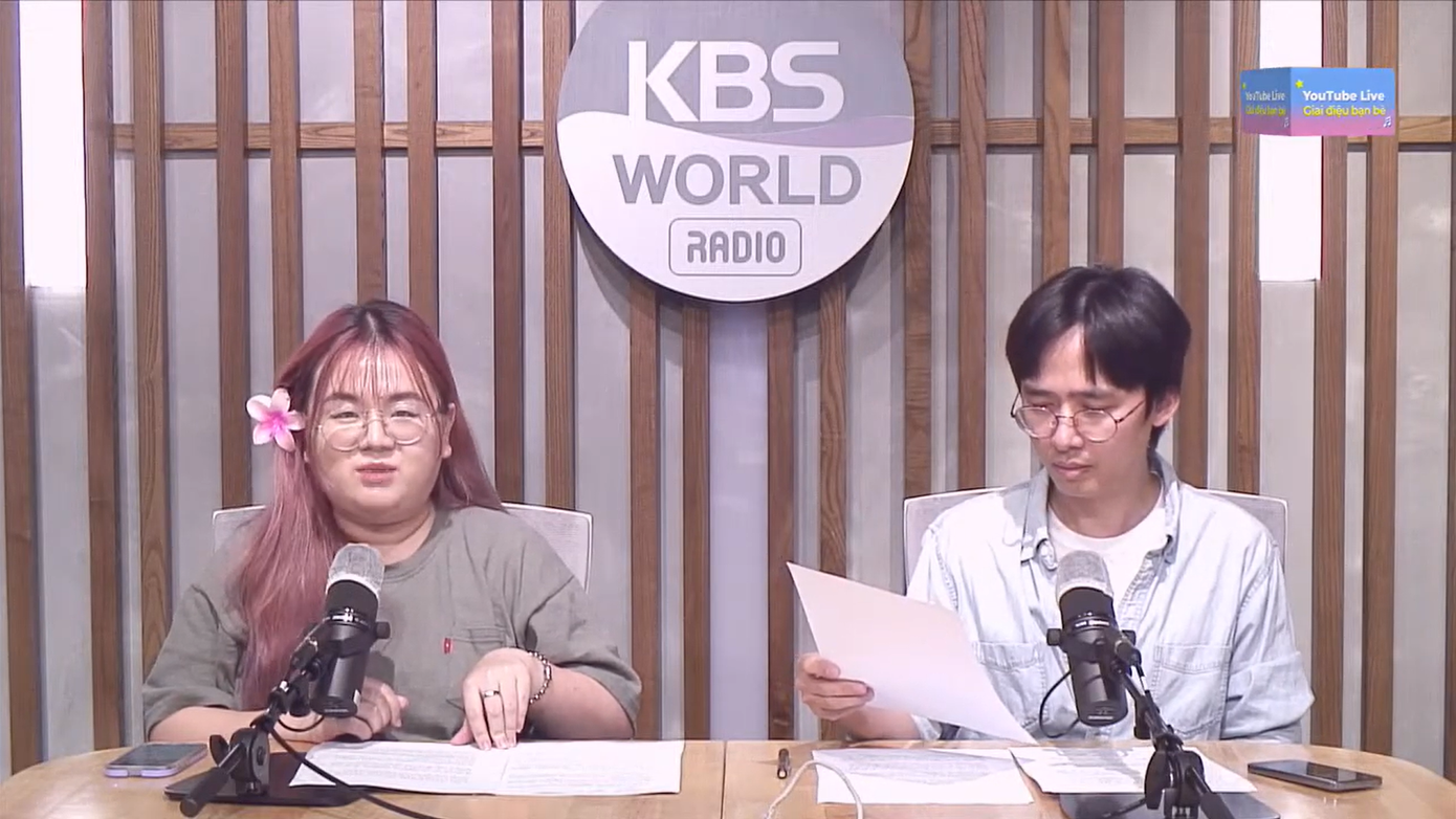 | Quỳnh Anh (trái) trong vai trò MC tại Đài Phát thanh quốc tế Hàn Quốc (KBS World Radio). |