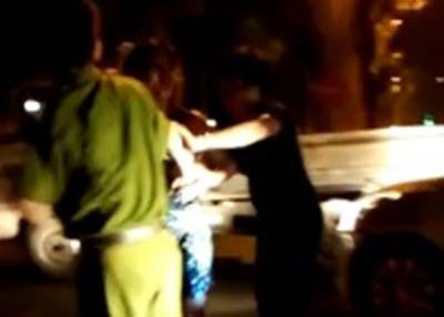 Xuân hành hung, lăng mạ cảnh sát giữa đường. Ảnh: Cắt từ clip.